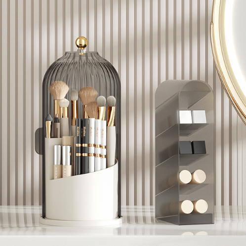 De binnenkant van de tandenborstelhouder kan 360° draaien, zodat je je tandenborstel, tandpasta, make-upborstels en andere spullen vanuit elke hoek gemakkelijk kunt pakken. Draai de houder om snel te vinden wat je nodig hebt. Zo heb je alles altijd binnen handbereik en bespaar je ruimte.