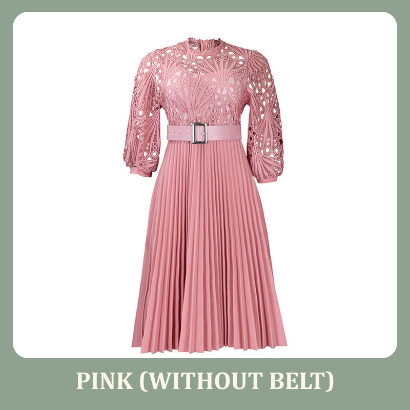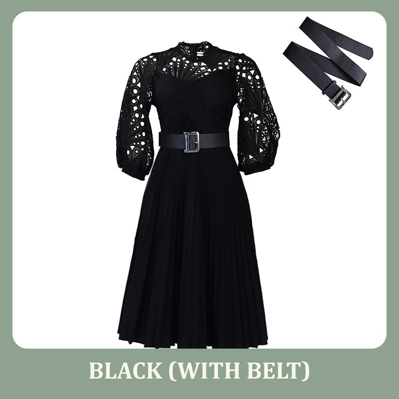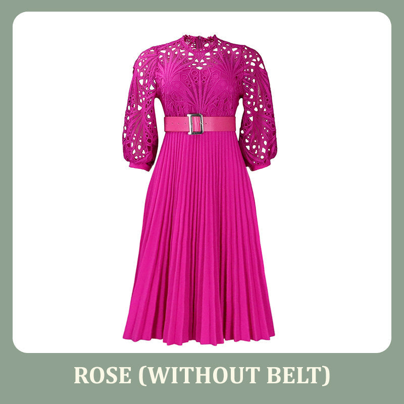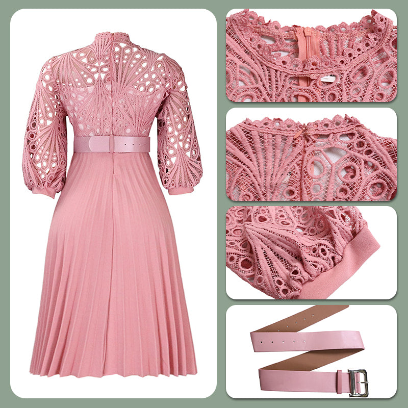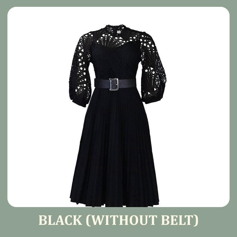 Stap in een betoverende wereld met onze kanten jurk met holle plooien voor dames. Het fascinerende kant, het verfijnde holle ontwerp en de delicate plooien creëren een prachtig silhouet, waardoor deze jurk perfect is om de aandacht te trekken op elk evenement.