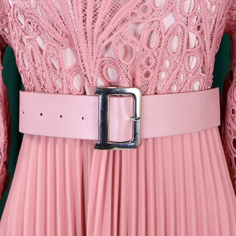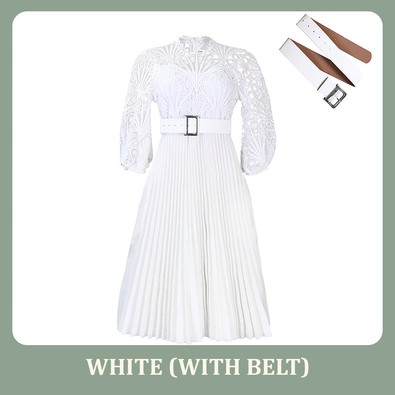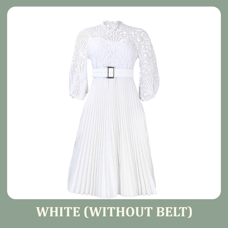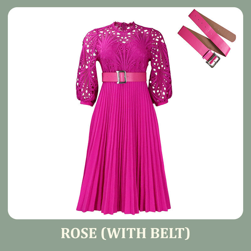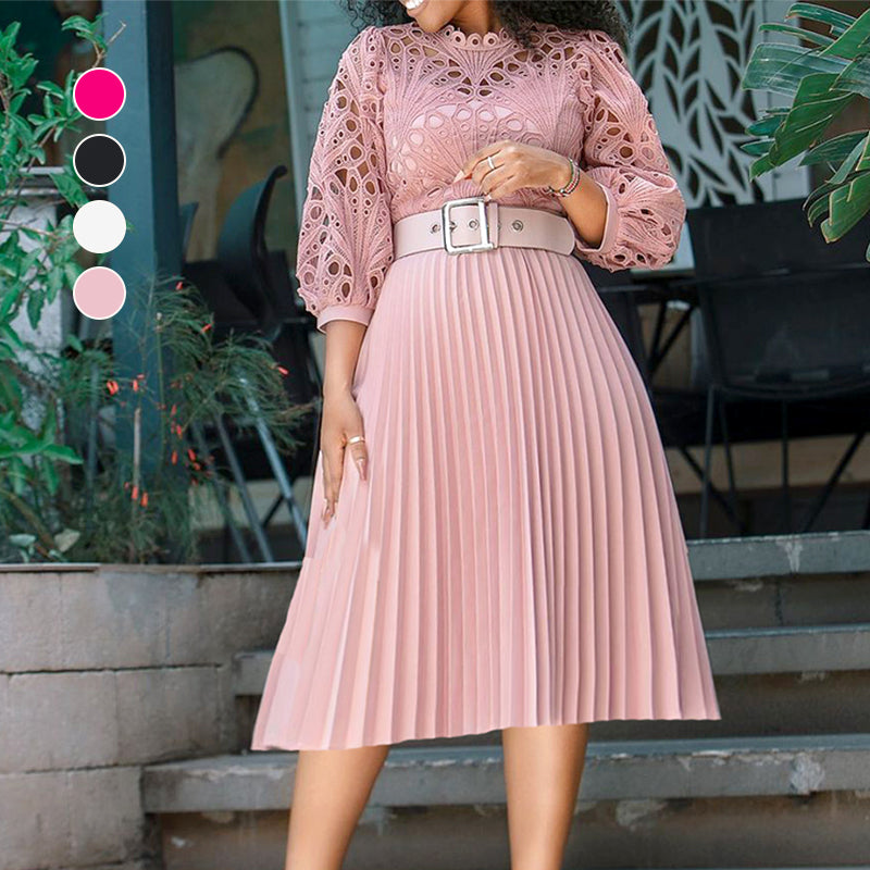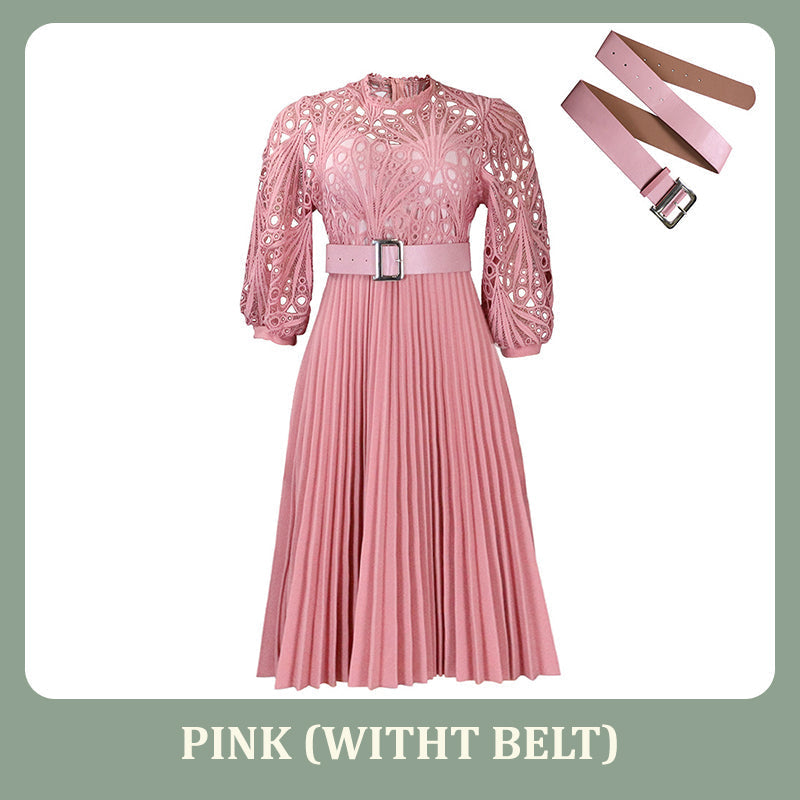 Stap in een betoverende wereld met onze kanten jurk met holle plooien voor dames. Het fascinerende kant, het verfijnde holle ontwerp en de delicate plooien creëren een prachtig silhouet, waardoor deze jurk perfect is om de aandacht te trekken op elk evenement.