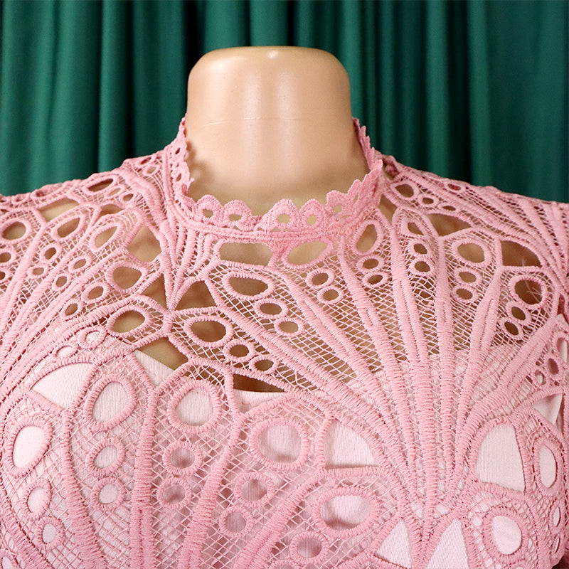 HOLLE ONTWERP - Verhoog je stijl met de betoverende allure van het holle ontwerp, dat een vleugje verfijning en intrige toevoegt aan deze kanten jurk.