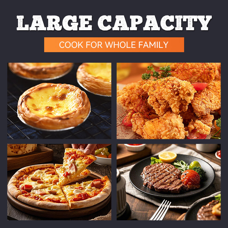 GROTE CAPACITEIT & VEELZIJDIGHEID 🍕🐔🍟 - De inhoud van 15 liter biedt gemakkelijk plaats aan een hele kip, 20 vleugels, friet of een pizza van 18 cm. Ideaal voor familiebijeenkomsten of maaltijdvoorbereiding!