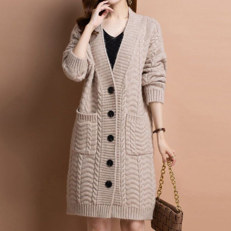 ✨Hot Sale 50% OFF✨Dames lang gebreid vest met V-hals en zakken