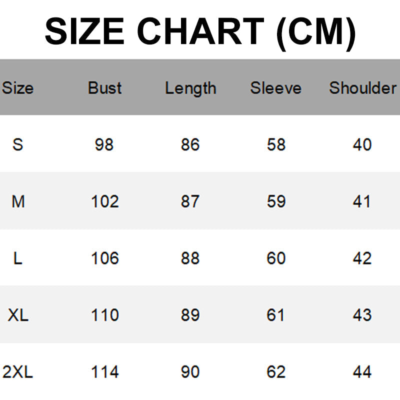 Controleer de maattabel vóór bestelling voor de beste pasvorm.