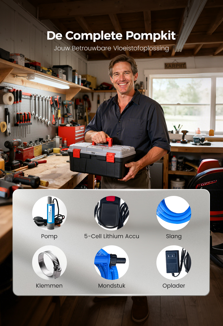 Aantal verlagen voor 🖤 50% KORTING! Hoogwaardige Draadloze Olie- & Waterpompset – Krachtig 100W, Draagbaar & Multifunctioneel (Noodoplaader Inbegrepen!)