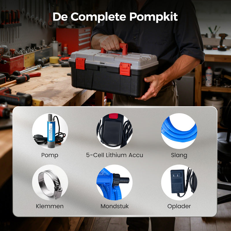 Aantal verhogen voor 🖤 50% KORTING! Hoogwaardige Draadloze Olie- & Waterpompset – Krachtig 100W, Draagbaar & Multifunctioneel (Noodoplaader Inbegrepen!)