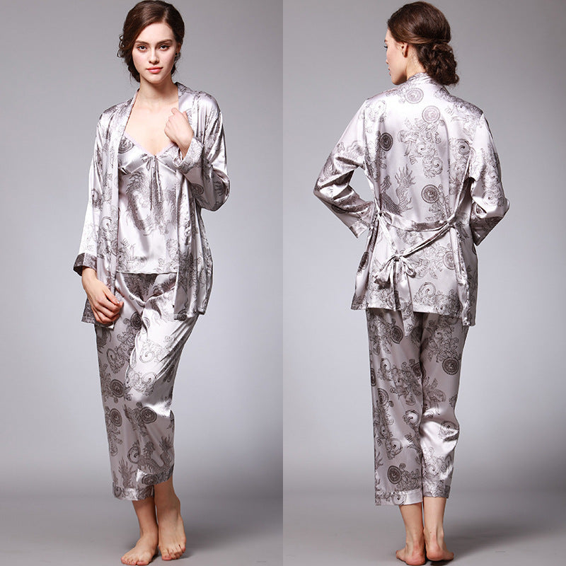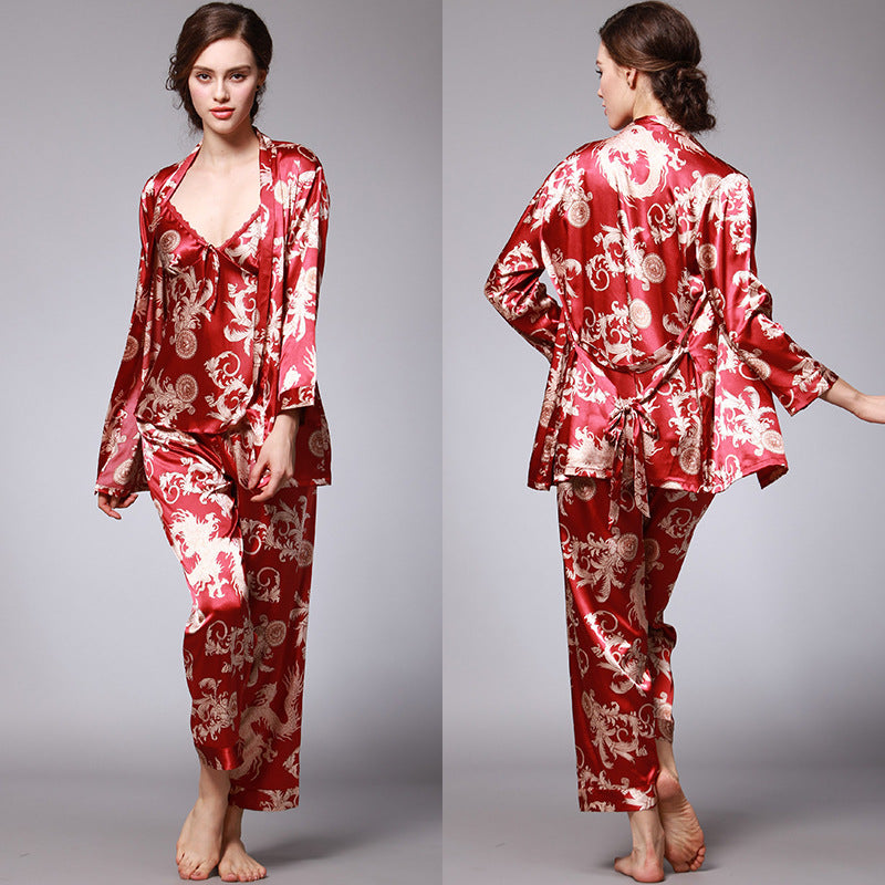 💖LAATSTE DAG ACTIE - 50% KORTING 💖 Oosterse stijl dames pyjamaset van 3 stuks: zijdezacht met drakenpatroon