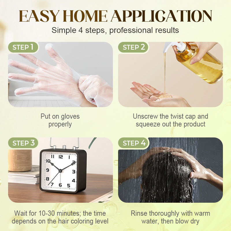 EENVOUDIG THUIS VERVEN - Transformeer je haarkleurervaring met een ongelooflijk eenvoudig aanbrengproces. Mengen is niet nodig; breng het gewoon direct aan. Met slechts vier eenvoudige stappen bereik je professionele resultaten in het comfort van je eigen huis, bespaar je tijd en geld en behoud je de controle over je haarverzorgingsroutine.
