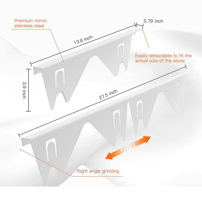 EENVOUDIG VERSTELBARE LENGTE: Voorzien van een flexibel, verstelbaar ontwerp dat geschikt is voor spleten van verschillende afmetingen, waardoor het perfect past voor de meeste fornuizen en aanrechtbladen. Trek de afdekking eenvoudig in of uit om aan je behoeften te voldoen.