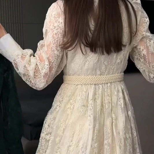Bespaar 60€🎀Vintage geborduurde jurk met lantaarnmouwen💃