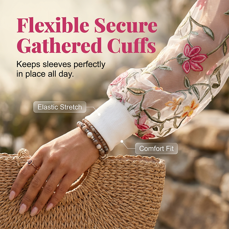 DOORZICHTIGE MOUWEN MET BOTANISCH PATROON - Deze opvallende, doorschijnende mouwen zijn versierd met gedetailleerd bloemenborduurwerk en geven je dagelijkse outfit een romantische en verfijnde uitstraling.
