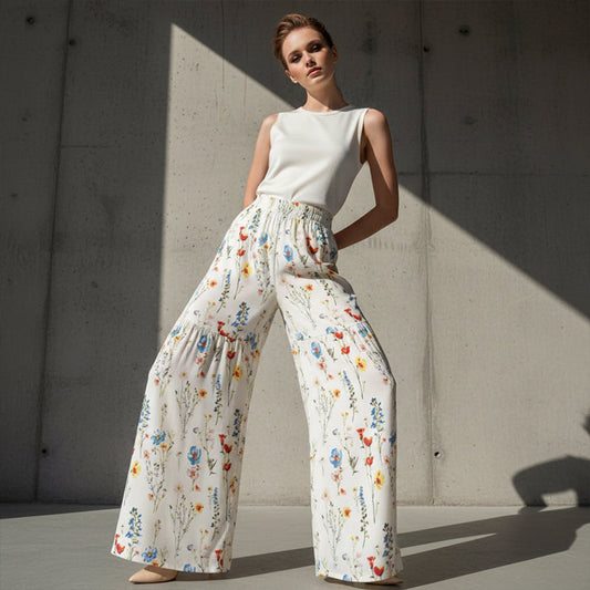 🔥2026 Hot Sale 50% Korting🔥Damesbroek met bloemenprint en wijde pijpen