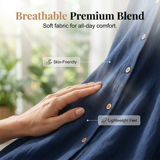 Bespaar 31,12€🔥KORTING!Linnenmix jurk met knopen✨Ademend&Veelzijdig